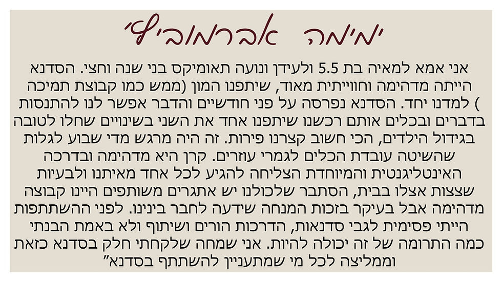 ** פתיחת הקבוצה מותנית בכמות המשתתפים, מספר המקומות מוגבל ל-6 משפחות בלבד